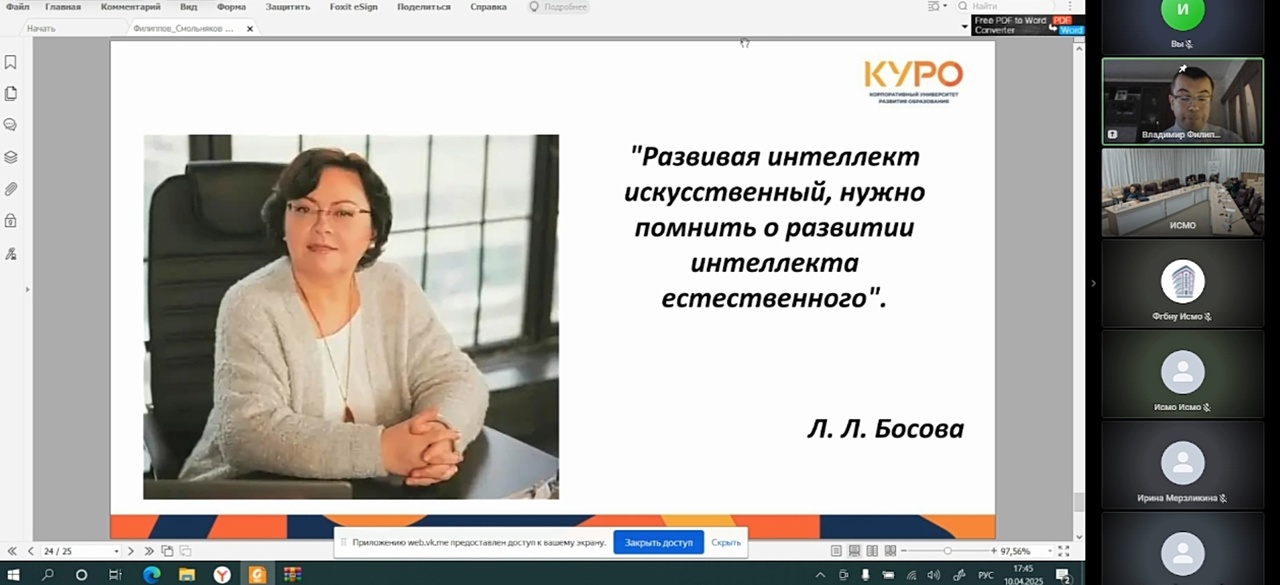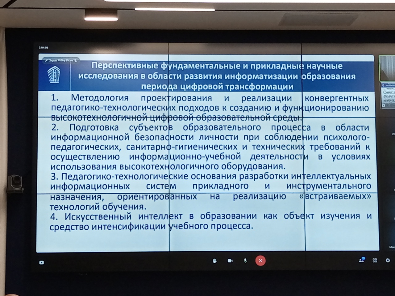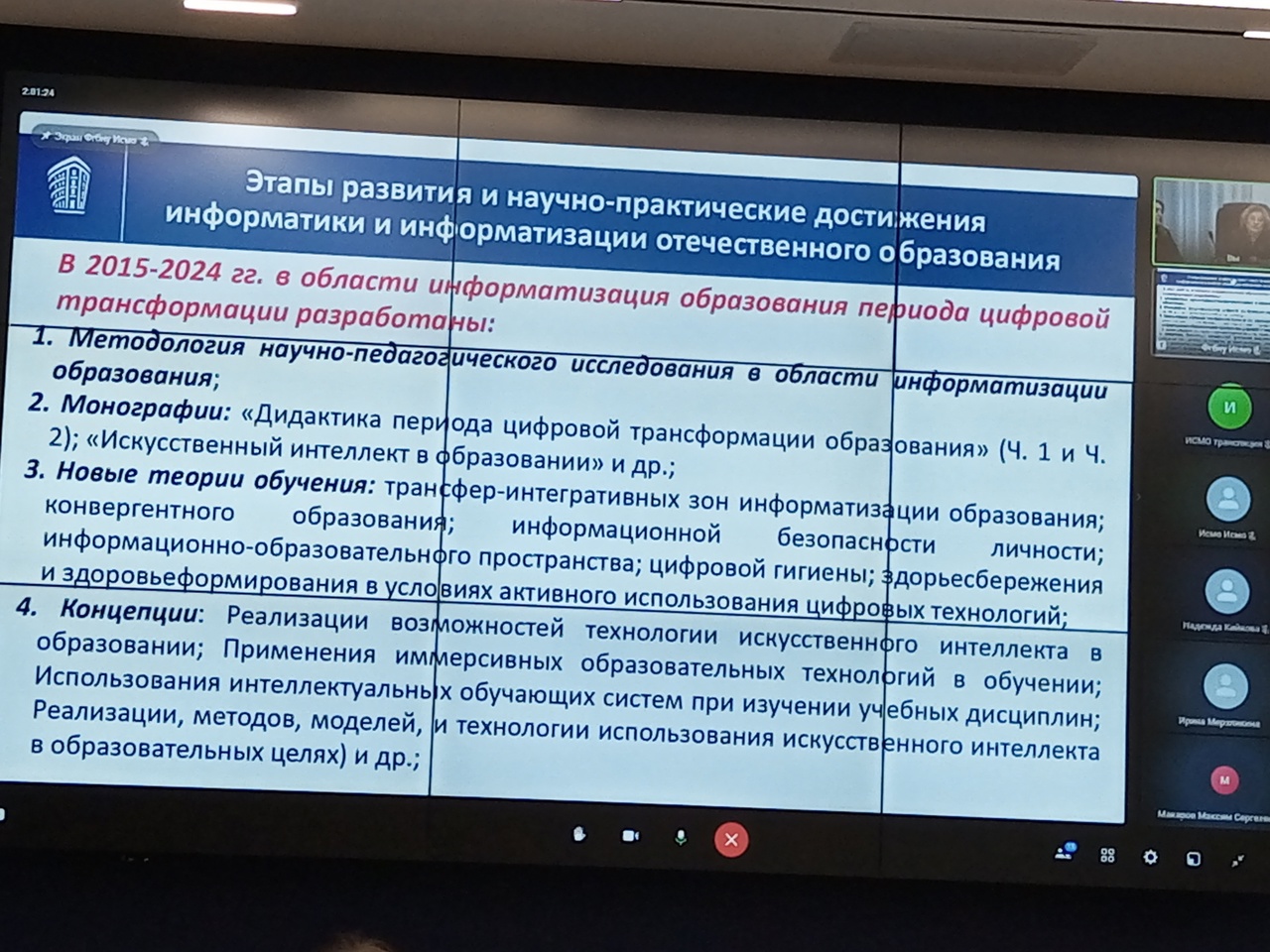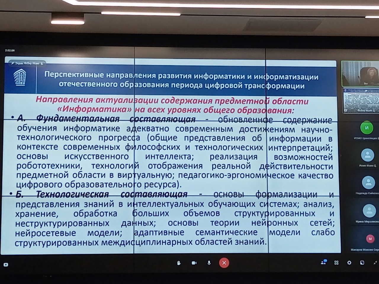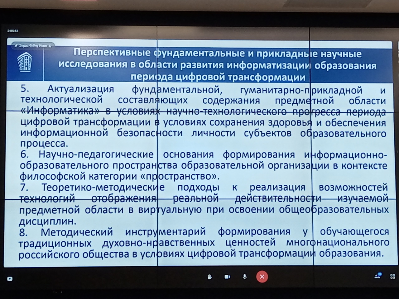 В Институте содержания и методов обучения проходит Международная научно-практическая конференция “Теория и практика развития информатики и информатизация отечественного образования периода цифровой трансформации”. В качестве слушателя в конференции принимает участие проректор по НМР Elena Namzhilova.
