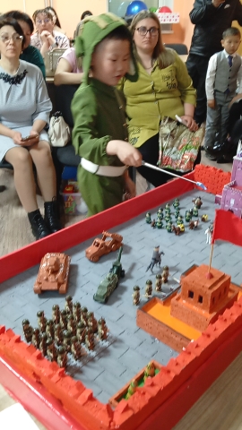 2 место присуждено Батуеву Баясхалану, воспитаннику детского сала «Туяа» п. Агинское с темой «Сухой армейский душ – средство гигиены в военно-полевых условиях» и Шубадеров Виталий, воспитанник детского сада «Чебурашка» с. Дульдурга с темой исследования «История одного оружия».