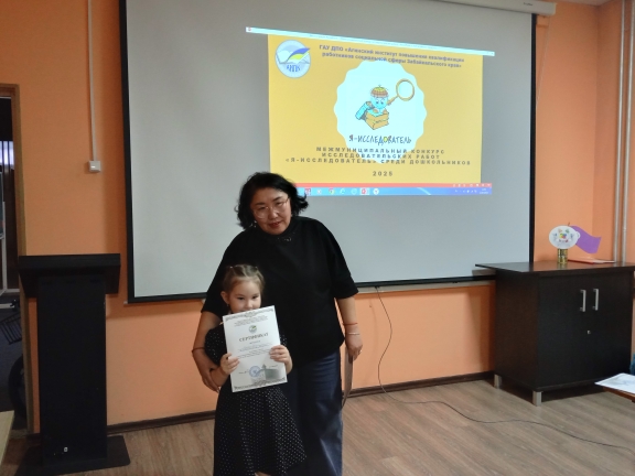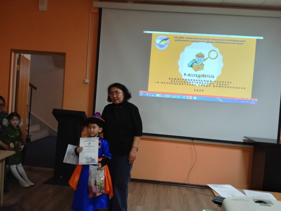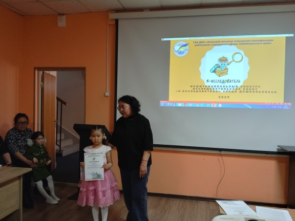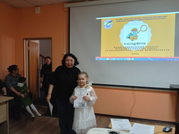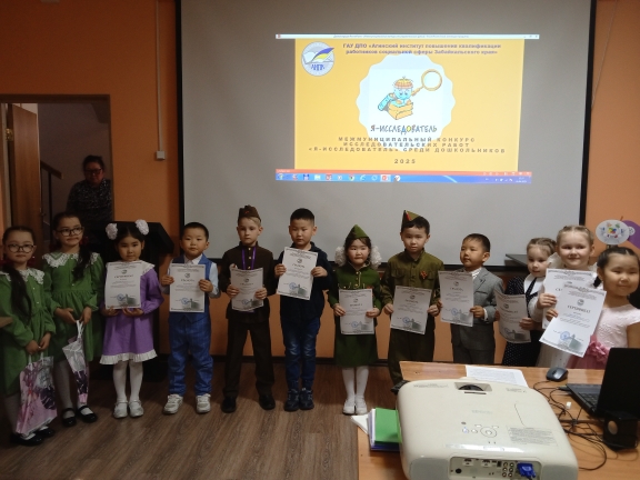 24 апреля 2025 года на базе ГАУ ДПО «Агинский институт повышения квалификации работников социальной сферы Забайкальского края» прошел межмуниципальный конкурс исследовательских работ среди детей старшего дошкольного возраста «Я-исследователь». Цель конкурса развитие интеллектуального, творческого потенциала личности ребенка дошкольного возраста, совершенствование навыков исследовательского поведения и развитие исследовательских способностей.