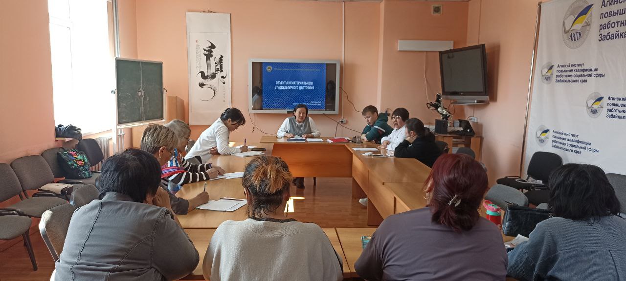 15-16 мая в ГАУ ДПО «Агинский ИПК» совместно со специалистами Центра развития бурятской культуры Забайкальского края проведены курсы повышения квалификации «Обновление содержания деятельности учреждений культуры в условиях вызовов современности». Старший преподаватель Агинского ИПК Дулмажаб Цынгуева, директор ЦРБК Сэсэг Норполова, проректор по НМР Агинского ИПК Елена Намжилова прочитали лекции по актуальным для сферы культуры проблемам.