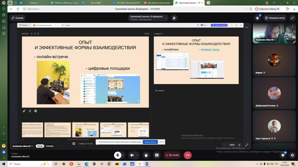 «Просвещение родителей дошкольников: эффективные формы взаимодействия и новые практики» осветила в своем выступлении Асланова Айна Мирталыбовна, старший воспитатель МДОУ «Детский сад «Аленький цветочек» ГО «Поселок Агинское».