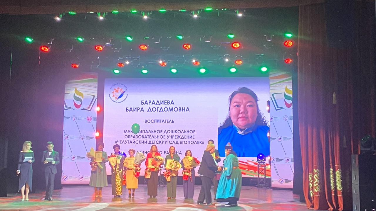 – Барадиева Баира Догдомовна, Челутайский детский сад «Тополек», конкурс «Лучший учитель родного языка и литературы (номинация «Лучшие практики развития родной речи детей дошкольного возраста»).