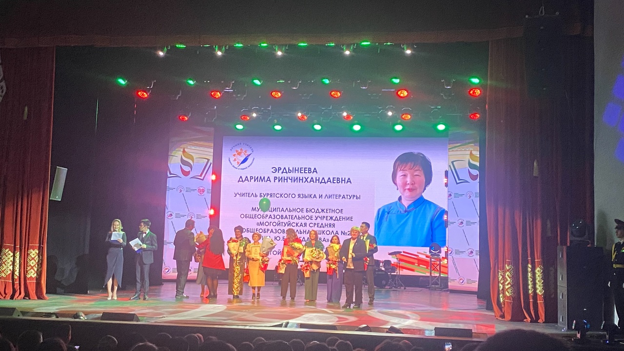 – Эрдынеева Дарима Ринчинхандаевна, учитель родного языка МСОШ 2, конкурс «Лучший учитель родного языка и литературы»;